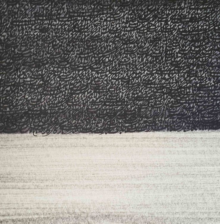 Khayal explores the boundless power of imagination and the profound act of immersing oneself in a dialogue with the self. At the heart of this text-based artwork, Muzzumil pens: