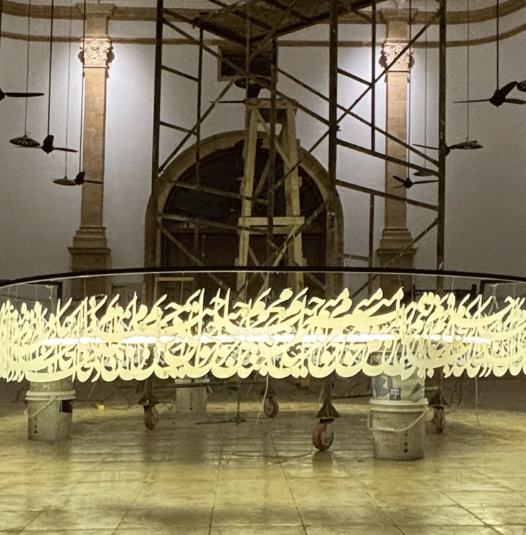 The piece is aptly named Khayal to reflect the essence of imagining—the intoxicating experience of getting lost in thought, unsure of where it might lead. Within this historical space dedicated to knowledge and community, the artwork invites viewers to reflect on the layers of their own thoughts and the endless possibilities they contain.