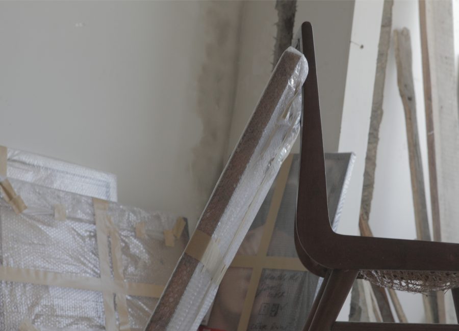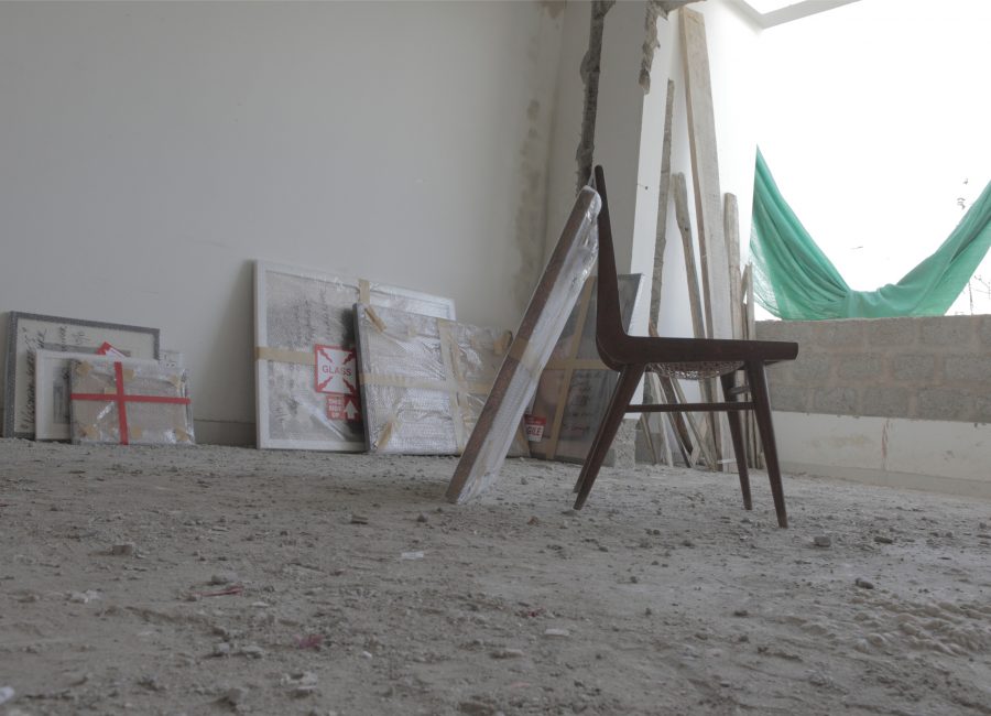 For instance, the memories that made the armchair special, like the paint fading from the armrest where Baba Jee (grandfather) used to keep his hands or the knitting of the seating coming off from where little Billu jumped on it… these memories that define the worth of the chair. To be taken or just left behind like junk. In the same way, art works, packed and sitting to be taken. The ladder, used for removing the more dear objects, and then left behind… not sure if it has any value to be taken too.