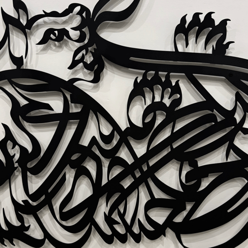 Each animal carries something of that silence: a lion holds back fury, a rabbit hides hesitation, a swan carries unspoken grace. These forms are drawn carefully, each shaped by the discipline of thuluth script — a language of precision that I stretch until it almost breaks.